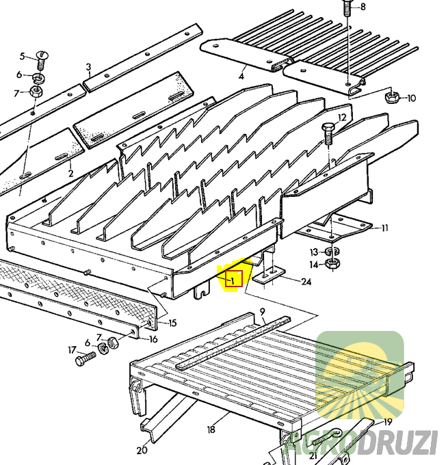 Грохот 1236x1750мм John Deere AZ23116 – це компонент зернозбирального комбайну John Deere. Забезпечує сепарацію зерна від полови та інших домішок. Має розміри 1236 мм на 1750 мм. Номер деталі за каталогом John Deere – AZ23116.