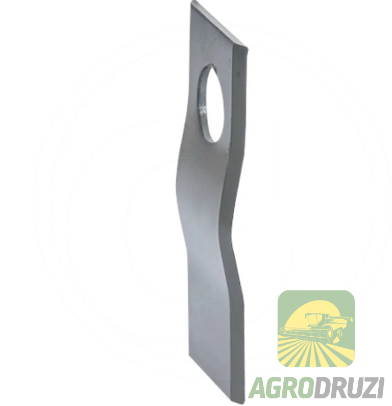 Ніж вигнутий – деталь для подрібнювального апарату сільськогосподарської техніки. Використовується в конструкції подрібнювачів комбайнів Claas, John Deere, Massey Ferguson. Призначений для встановлення як рухомий елемент ріжучого механізму. Виготовлений з високоякісної сталі, що забезпечує тривалий термін експлуатації та стійкість до зношування при інтенсивних навантаженнях. Забезпечує якісне подрібнення рослинної маси.
