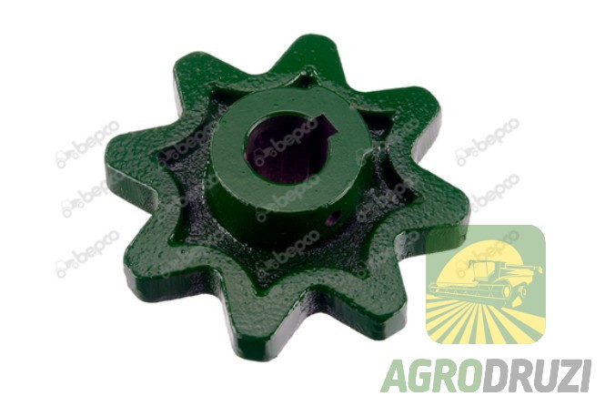 Зірочка елеватора Z8 fi25 - важлива деталь для ефективної роботи вашої зернозбиральної техніки. Ця зірочка, також відома як "звьоздочка" або "зірка", є ключовим компонентом у приводних системах елеваторів. Її завдання - забезпечувати надійне зачеплення з ланцюгом, гарантуючи безперебійне транспортування зерна. Ця модель зірочки має вісім зубців (Z8) та внутрішній діаметр 25 мм. Вона підходить для широкого спектру зернозбиральних комбайнів, включаючи John Deere, Claas, Massey Ferguson та інші. Незалежно від того, чи є у вас техніка John Deere, Claas, Massey чи іншого виробника, ця зірочка стане надійною заміною зношеної деталі. Компанія Агродрузі пропонує якісні запчастини, зокрема зірочки елеваторів, які відповідають найвищим стандартам. Забезпечте безперебійну роботу вашого комбайна з нашими запчастинами!